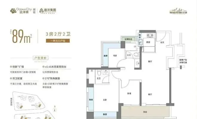 - 1单元06户型89㎡三房两卫,总价228-270万