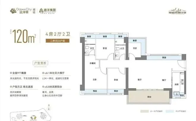 当前首推的远洋城启家园,总占地面积约1.65万㎡,总建筑面积约13.75万㎡,计容建筑面积约10.5万㎡,容积率6.12,绿化率40%,共由4栋47层高的住宅组成,其中1栋1/2/3/4单元住宅47F,2栋是1所9班幼儿园。