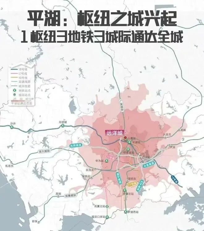 深圳布局了14个综合交通枢纽,平湖站升级为深圳的8个高铁枢纽之一,“1高铁、2城际、3地铁、4快速路”的配置,让平湖枢纽跻身为继福田、罗湖口岸、深圳北站之后的深圳第四大交通枢纽中心(平湖白泥坑还规划有深大城际线路)。