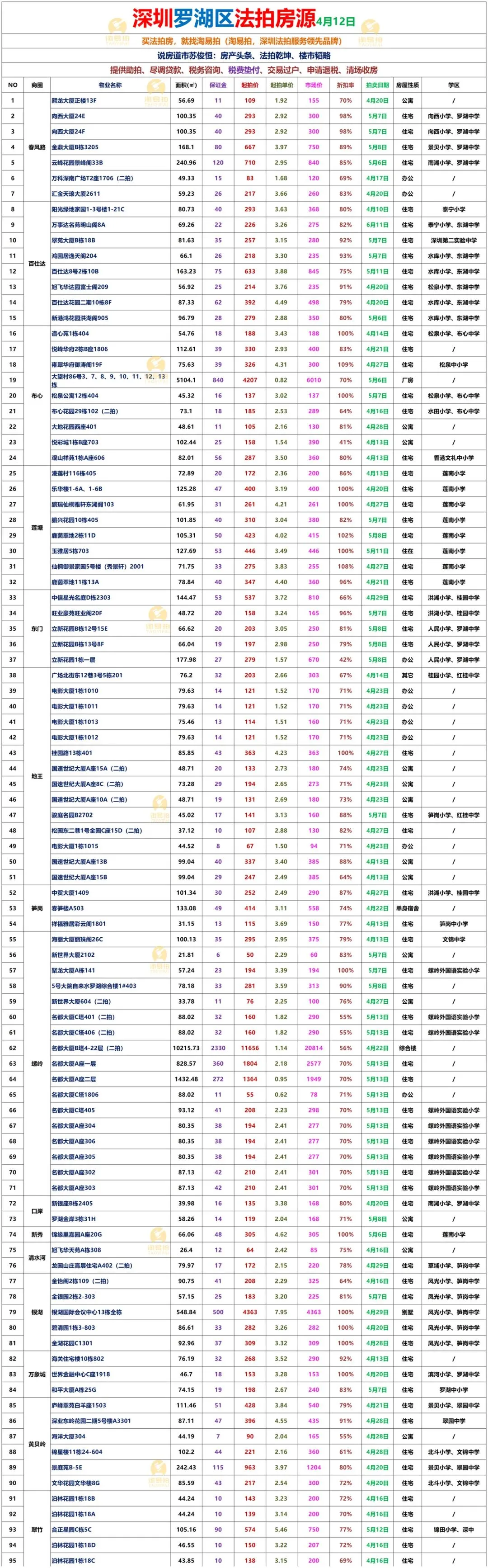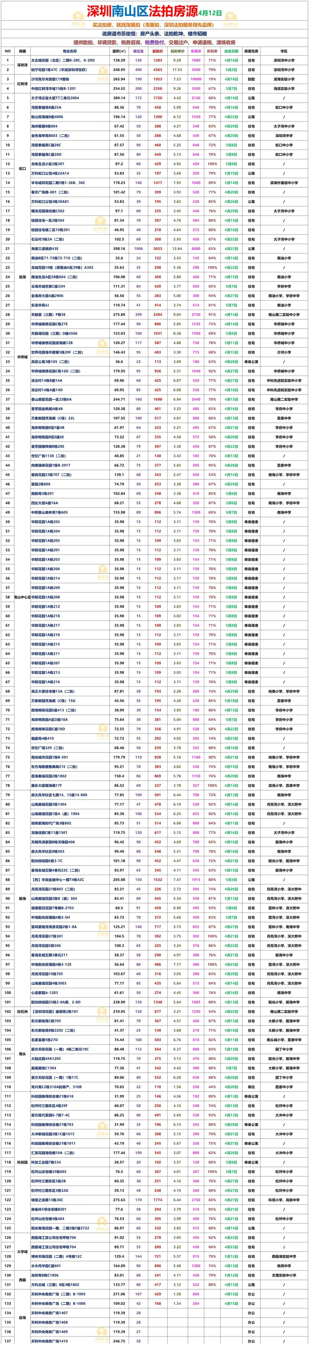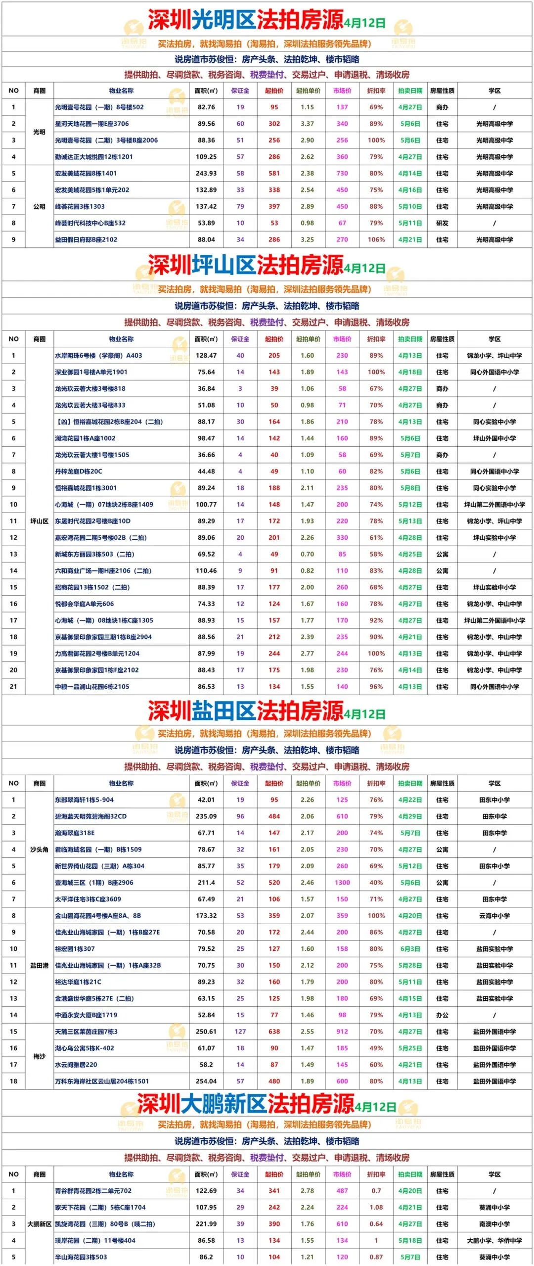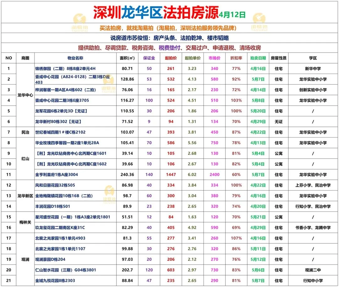 深圳各区法拍房源表