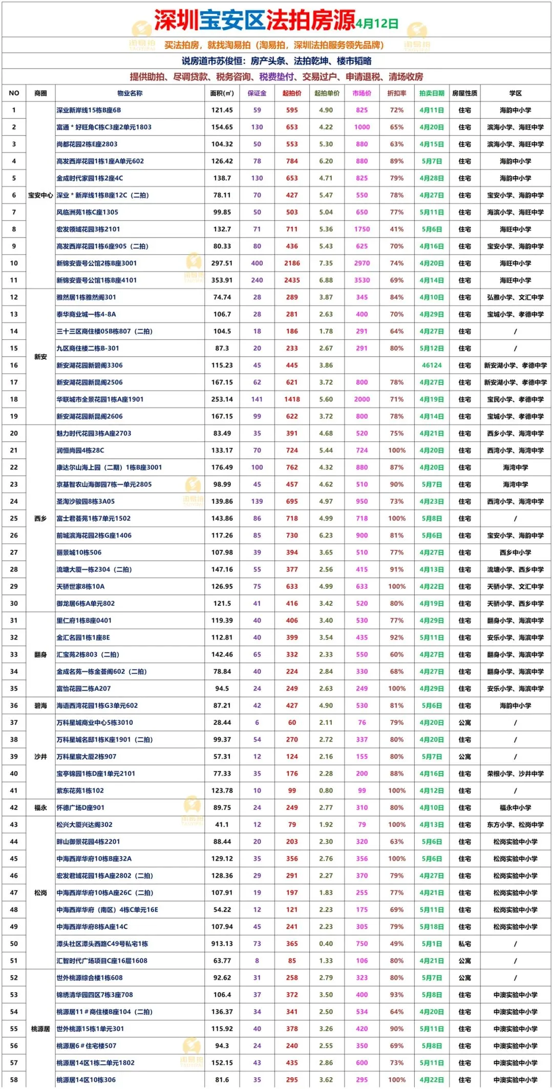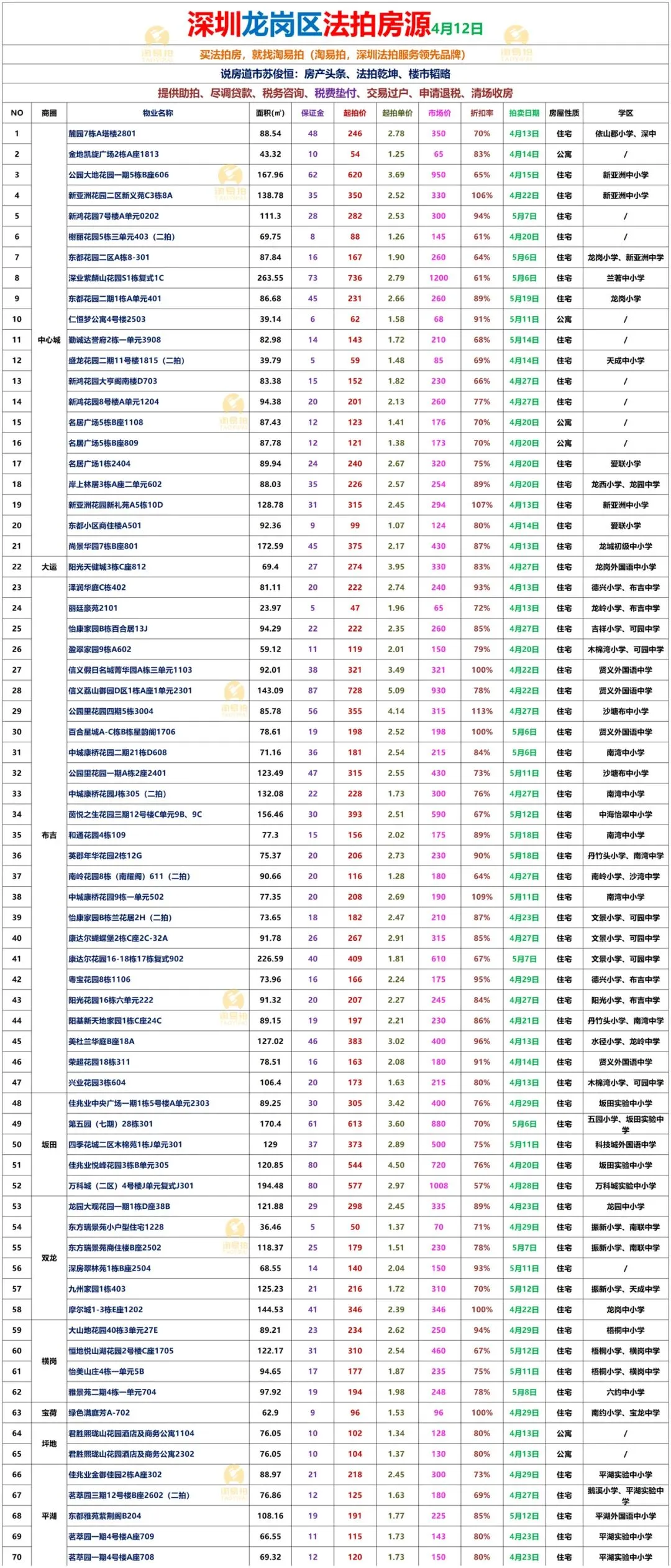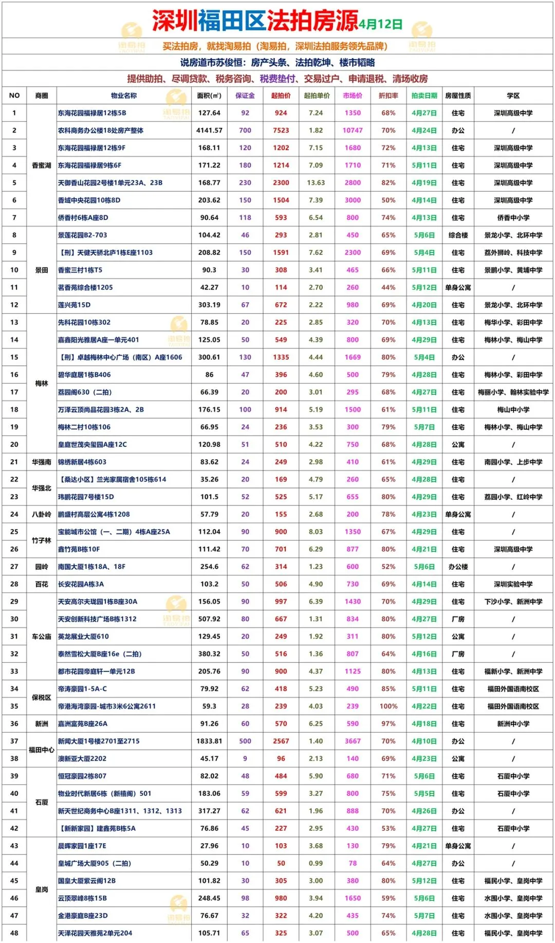 深圳各区法拍房源表