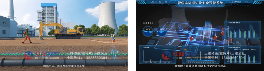 本次合作不仅完成了一支三维动画作品,更实现了对电厂管缆安全预警系统的系统级表达升级。通过三维可视化手段,将原本难以理解的隐蔽工程结构与复杂技术逻辑转化为直观、连贯的动态内容,有效解决了“技术难展示、客户难理解”的核心问题。
