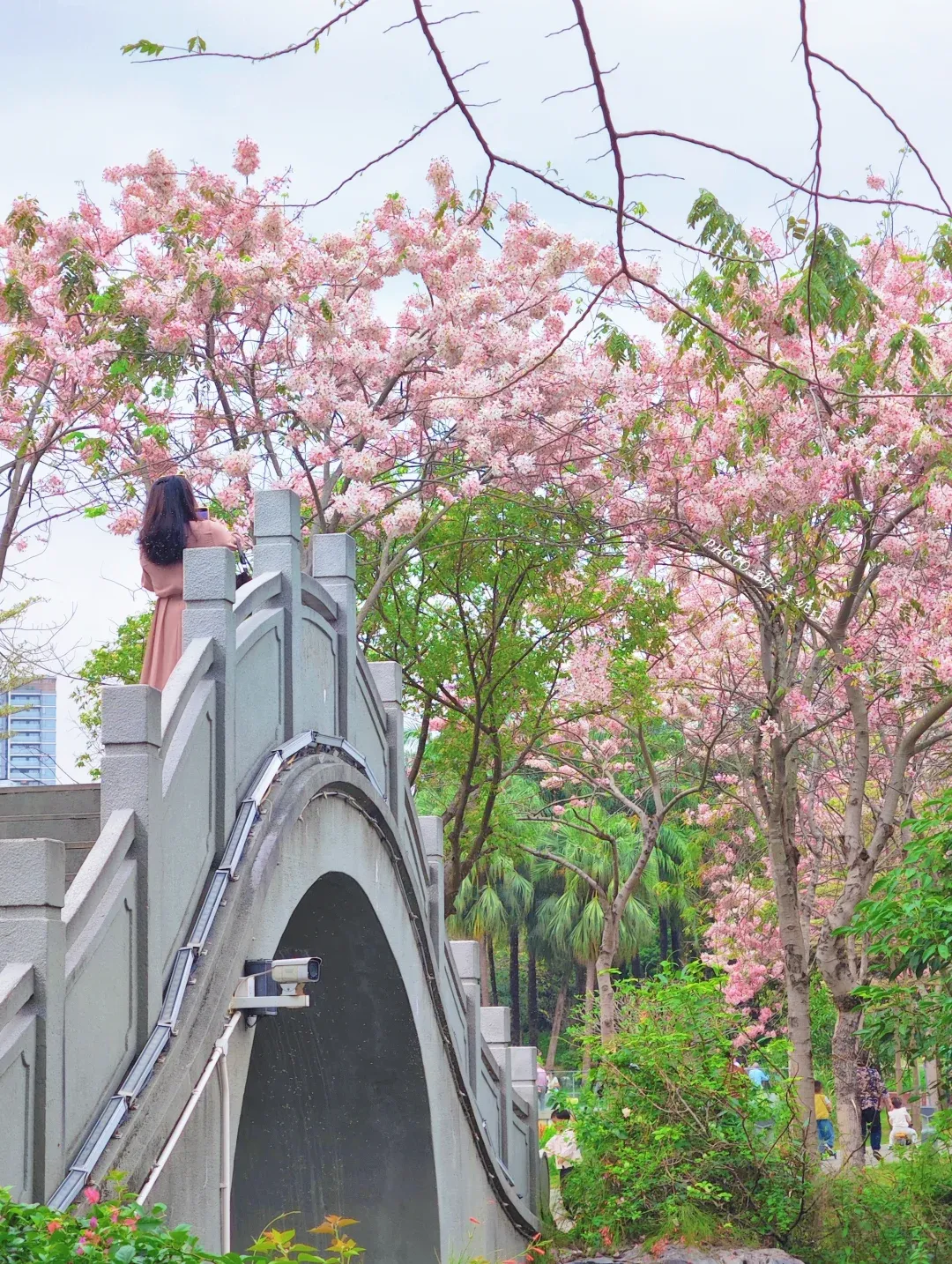 近 30 棵花旗木集中在 叠水桥、九孔桥、湖畔 一带,花枝垂到水面,倒影绝美,园林风 + 樱花粉,拍汉服 / 新中式封神!除了樱花,还有湖泊、长廊、大草坪,逛足半天不腻- 🚇交通:12 号线 四海站 A 口 步行 900 米到南门