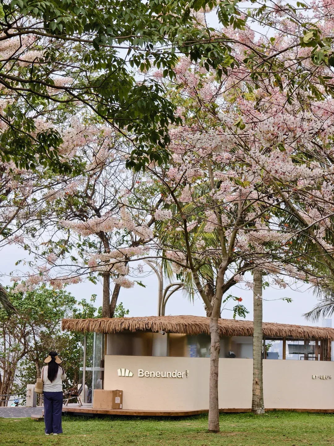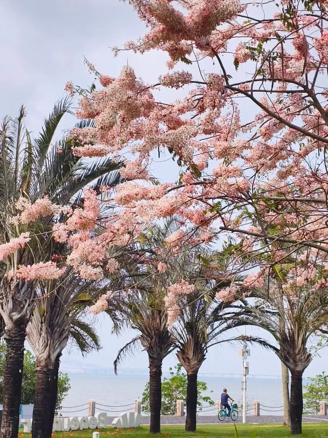 地铁直达!不想跑远路首选这里!虽然花树不多,但 有一棵超大老桩花旗木 非常出片,樱花 + 大海 + 蓝天同框,深圳独一份的浪漫,散步拍照超舒服- 🚇交通:9 号线 深圳湾公园站 D2 口 导航海韵园即到