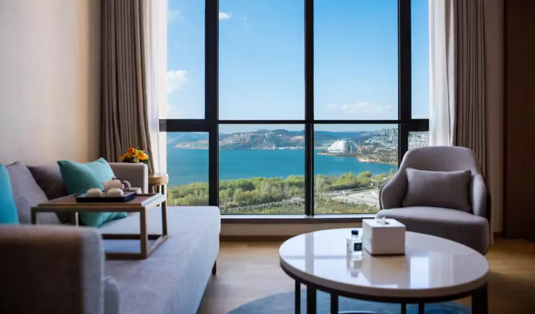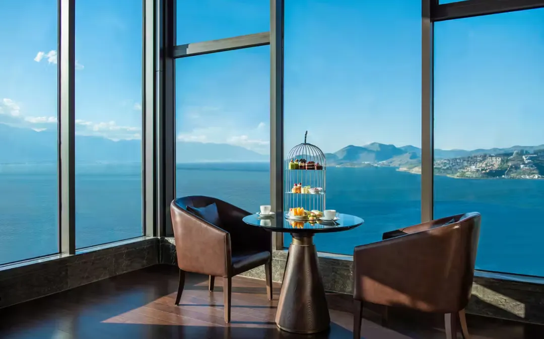悦云这个品牌是深耕云南及东南亚城市的酒店品牌,在昆明、丽江、西双版纳拥有多家度假或商务酒店;大理这家开业于2020年,硬件品质都还很不错,就在福朋喜来登旁边,同样拥有一线洱海景。她家的公区很棒,拥有诸多绝美景观位