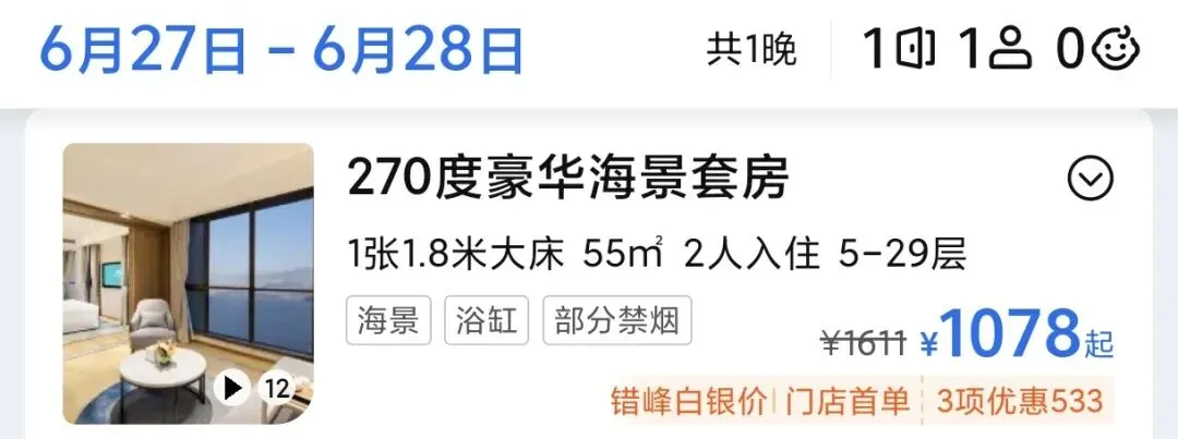 ①厦门喜来登券后1199元/2晚可拆分 套房吃喝全包