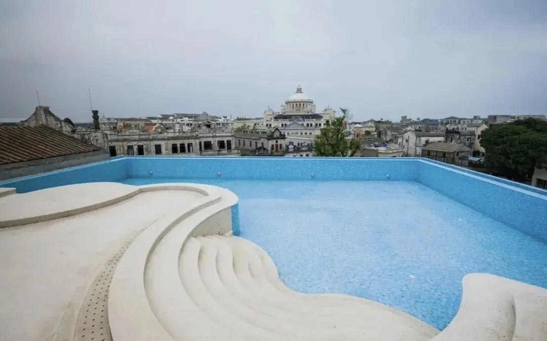 这家美堂就是赤坎景区的top1酒店,位于景区内中心地段,她家以爱国华侨领袖司徒美堂先生命名,有百年骑楼老建筑修复翻新而成2023年正式开业,各种配置均是妥妥的老钱风,特别是还拥有一个空中露台无边泳池,是俯瞰赤坎古镇全貌的绝佳机位,拍照非常出片。