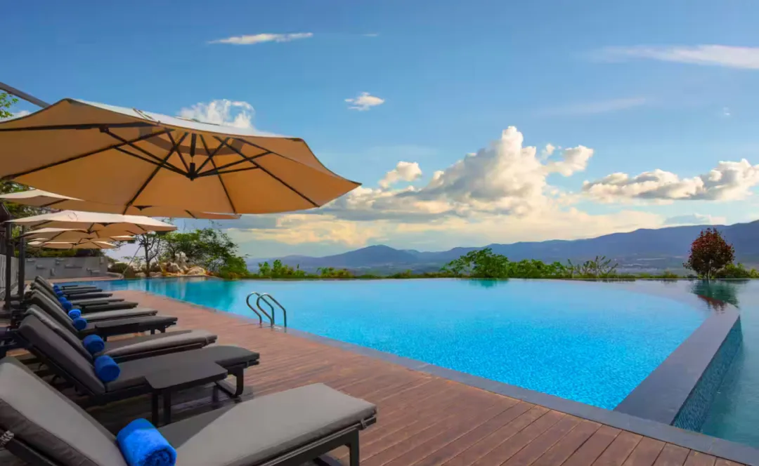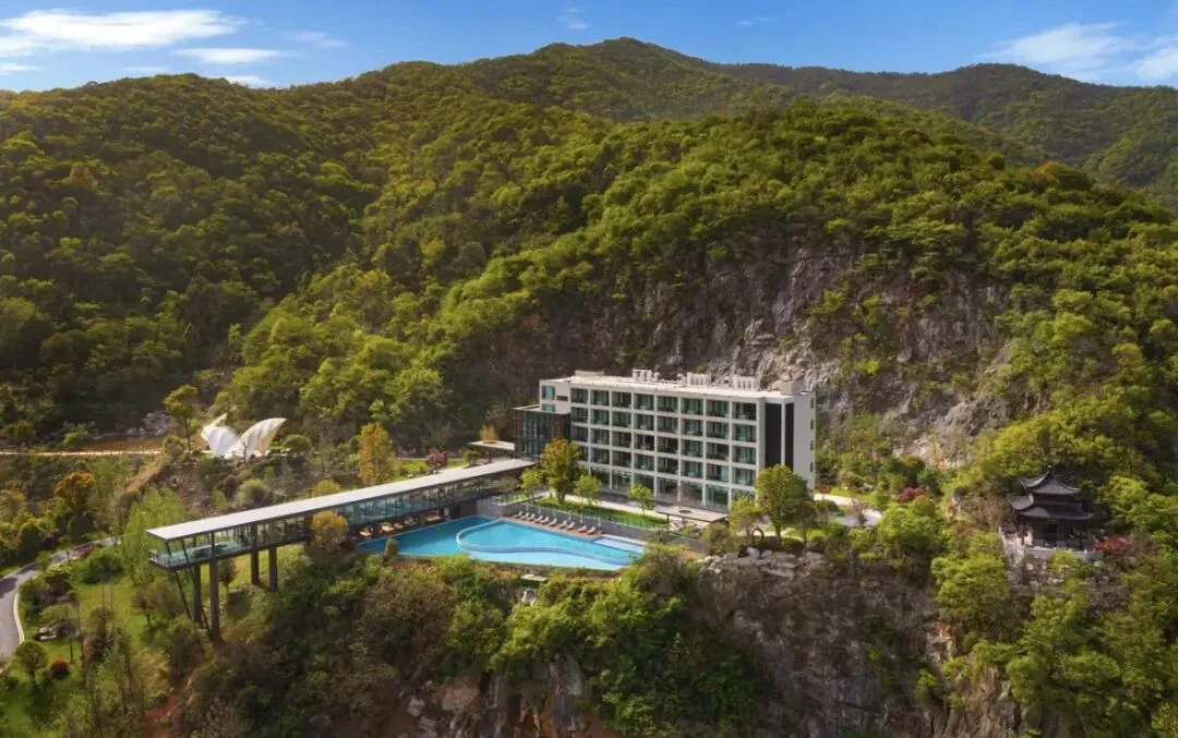 这家是2023年全新开业的一家非常有特色的高星度假酒店,位于太湖之滨宜兴,距离宜兴高铁站19分钟车程便可到达。整个酒店依山而建,环境风景和可玩性都非常不错,拥有大型无边泳池、悬崖餐厅、马术中心、露营草坪等等。