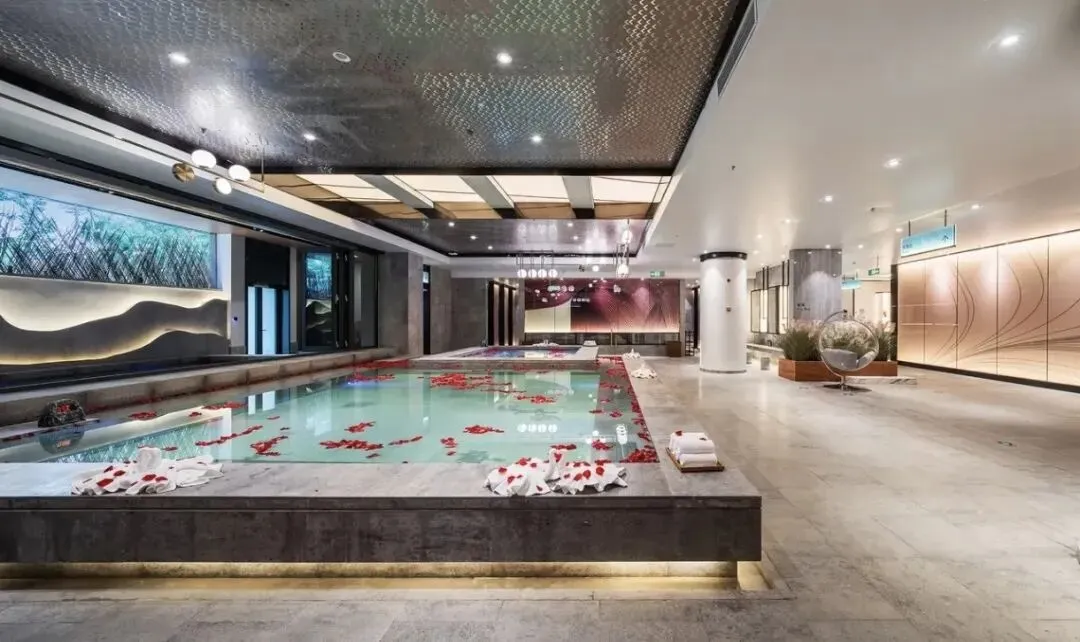 酒店周边还有良渚古城遗址,距今约有5000年的历史,2019年被列入世界遗产名录。酒店其它诸多硬件配置也是非常出众的,作为城市度假酒店更是拥有室内1个恒温和室外1个露天大型游泳池。