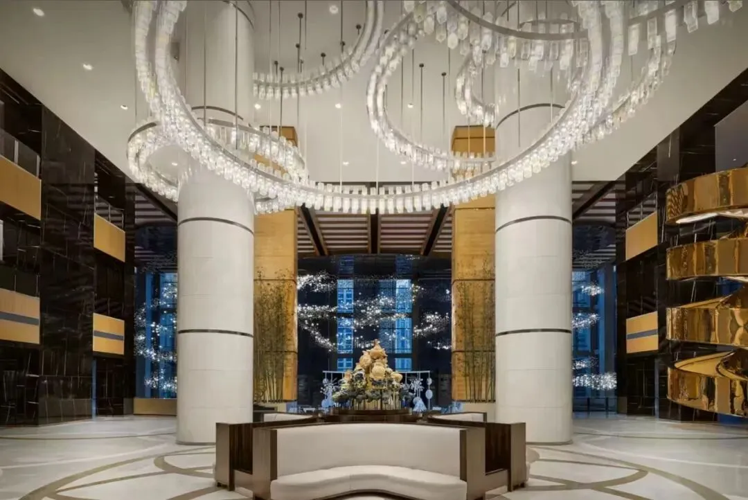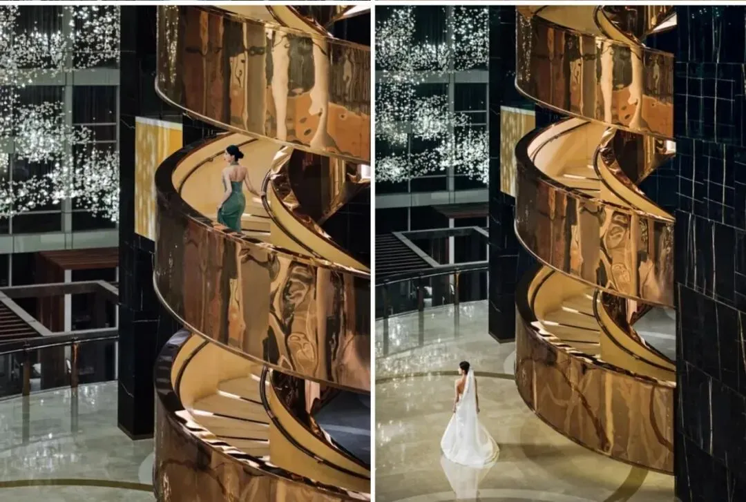 这家洲至奢选是去年由洲际本尊换牌而来,位置就在院士路地铁站步行几百米,坐拥7000㎡园林,还有美丽的湖景和河景;紧邻宁波市政府、国际金融中心及国际会展中心。她家的大堂非常高挑,还有网红金色旋转楼梯非常出片。