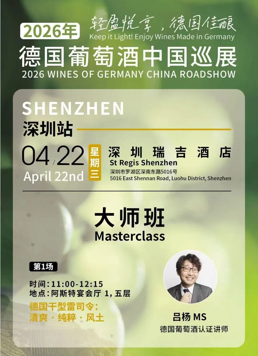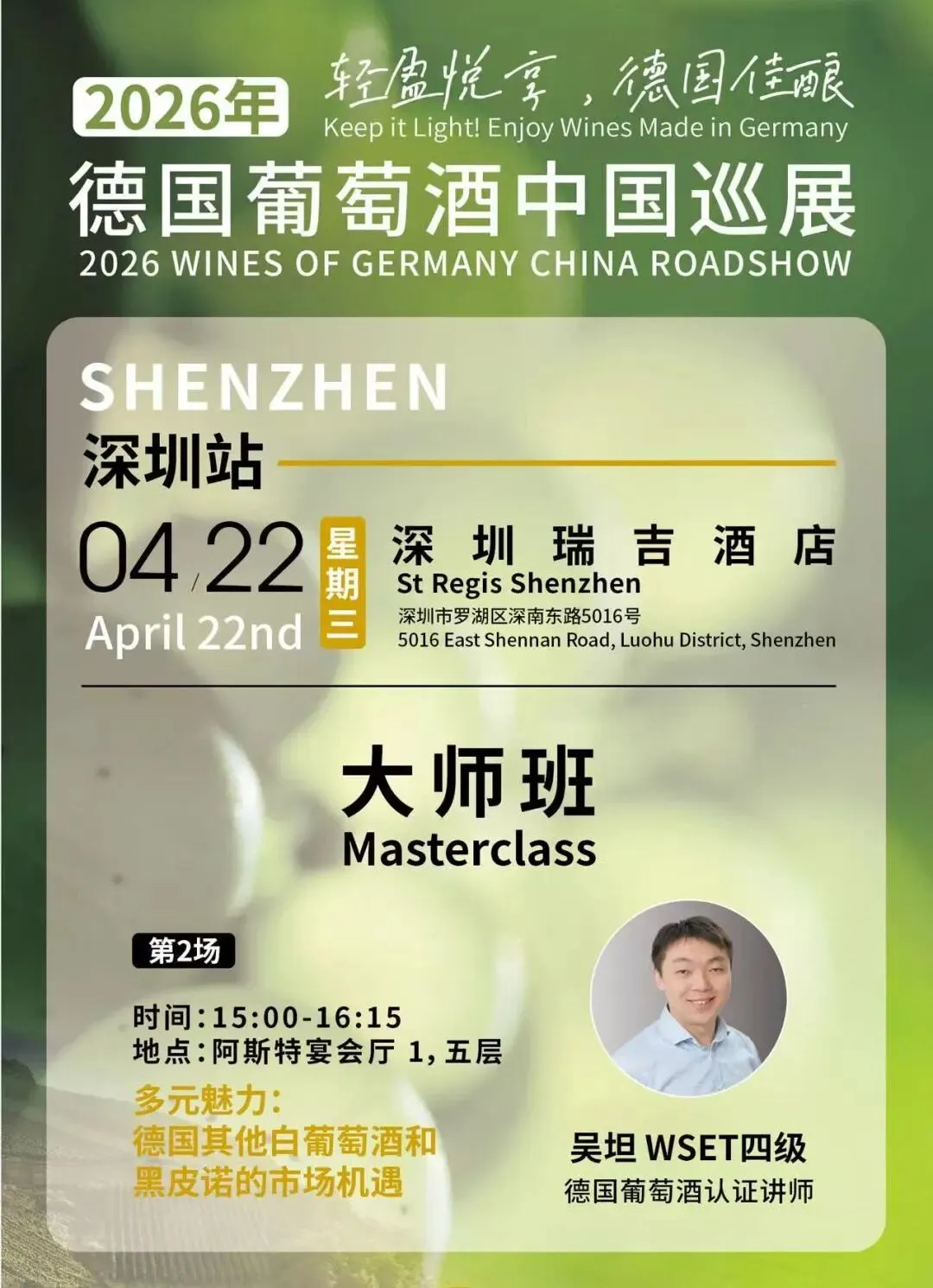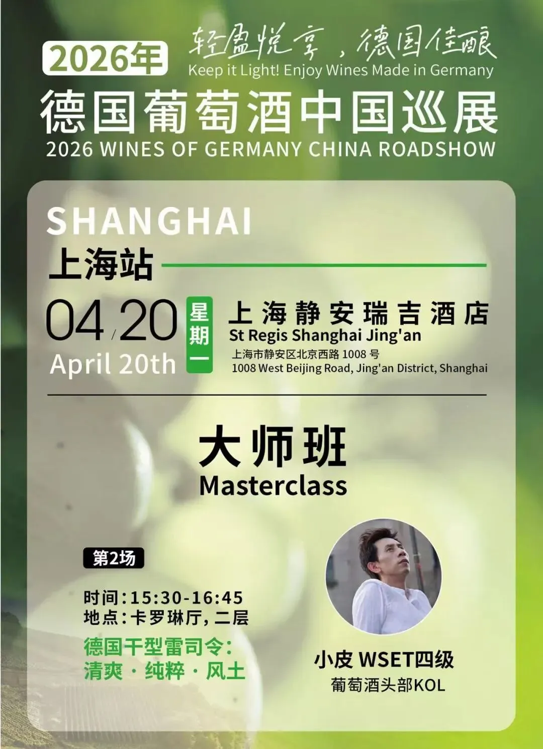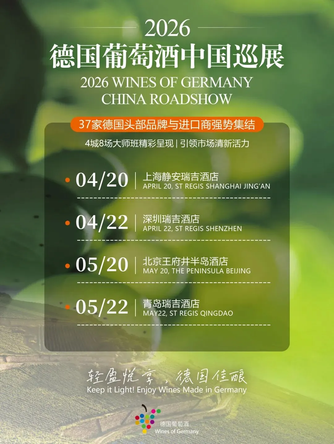 2026 年度德国葡萄酒中国巡展即将盛大启程,首站将于 4 月 20 日登陆上海,4 月 22 日亮相深圳!