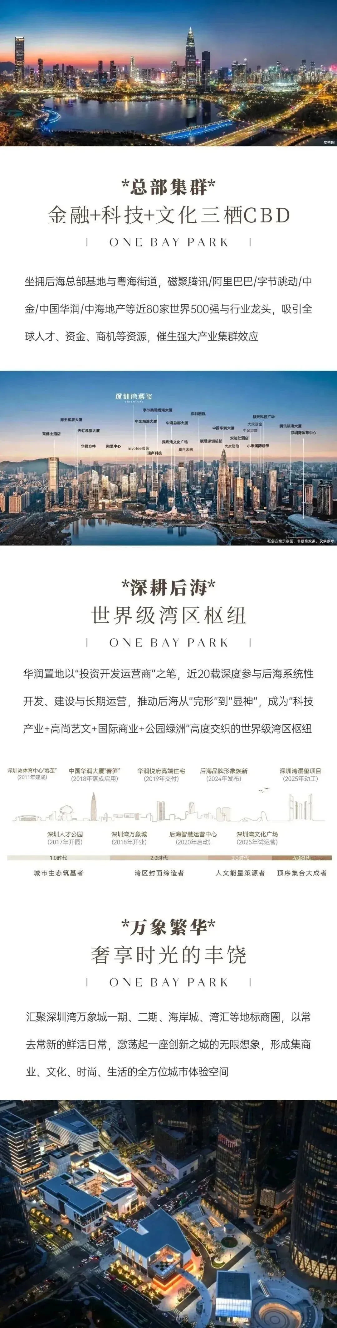 商业与产业项目2公里内汇聚深圳湾万象城、海岸城、来福士广场等高端商业体。所在区域为后海总部基地,聚集腾讯、阿里、字节跳动、中国华润、中金等近80家世界500强及行业龙头企业,产业资源高度集中。