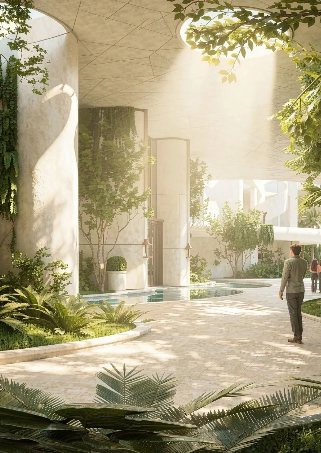 在竖向设计上,gad将建筑整体抬升18米,构建出双层底盘与三重立体生态空间,形成了独特的“空中浮岛”格局。