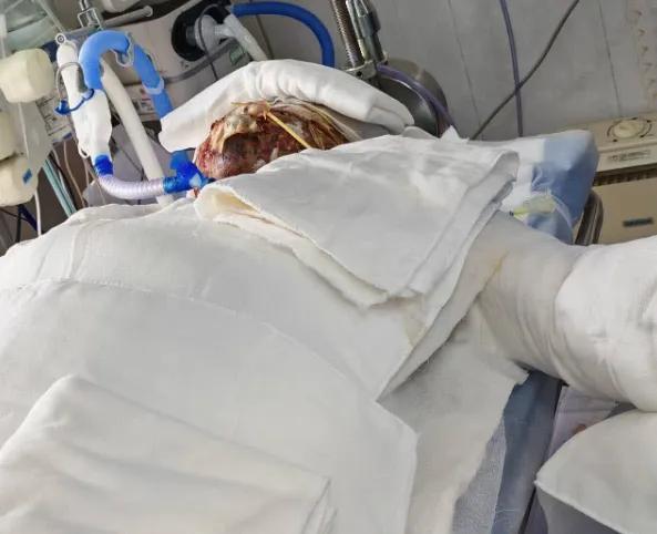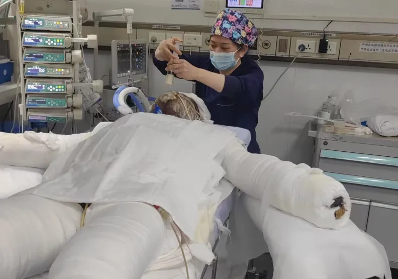 入院后,他迅速陷入昏迷休克状态,并伴随肾功能衰竭,医院随即下达病危通知。短短几天内,他已经接受了两次大面积植皮手术和肺部清理手术,目前仍在ICU依靠呼吸机维持生命,情况反复且极不稳定。医生表示,接下来至少还有两个月危险期,每一步都充满未知。
