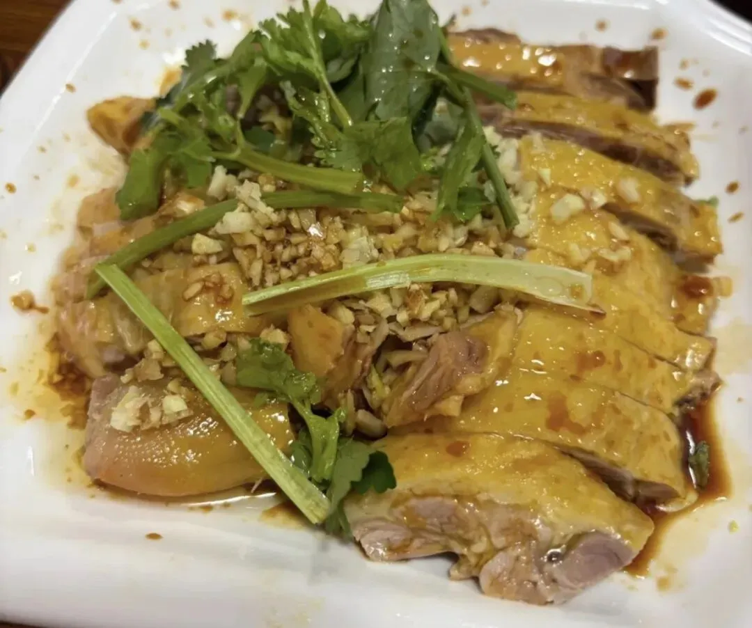 朋友说这个白切鸭很正宗,鸭肉偏瘦,不过我吃起来感觉咬着有点费劲,还是喜欢吃白切鸡。