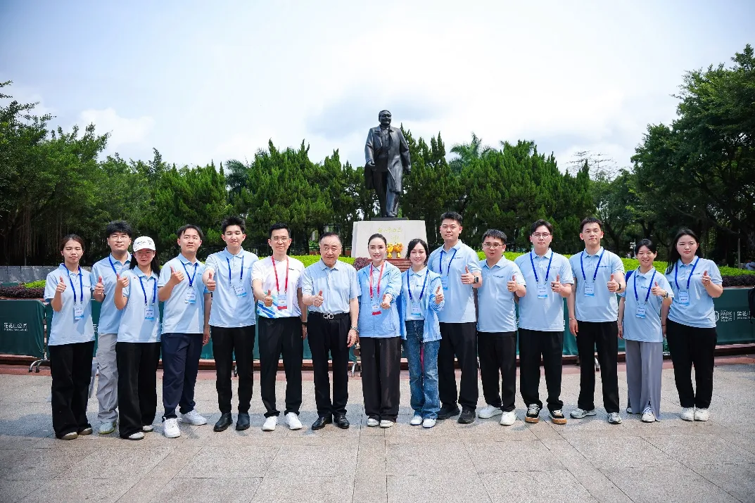 深圳分公司总经理龙晓棣(左六)与中国抗癌协会理事长樊代明院士(左七)在莲花山顶合影