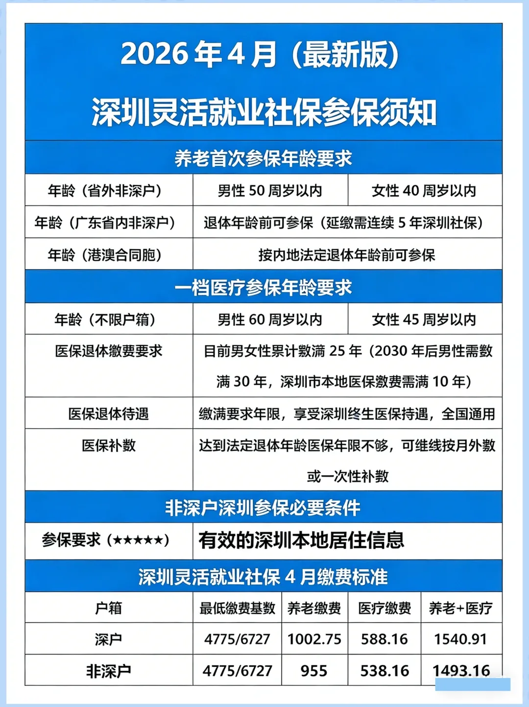 说明:深户和非深户缴费基数略有差异,灵活就业与公司缴纳的方式不同。