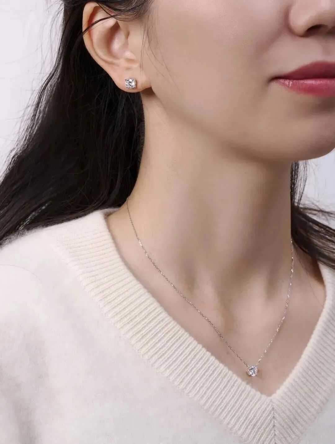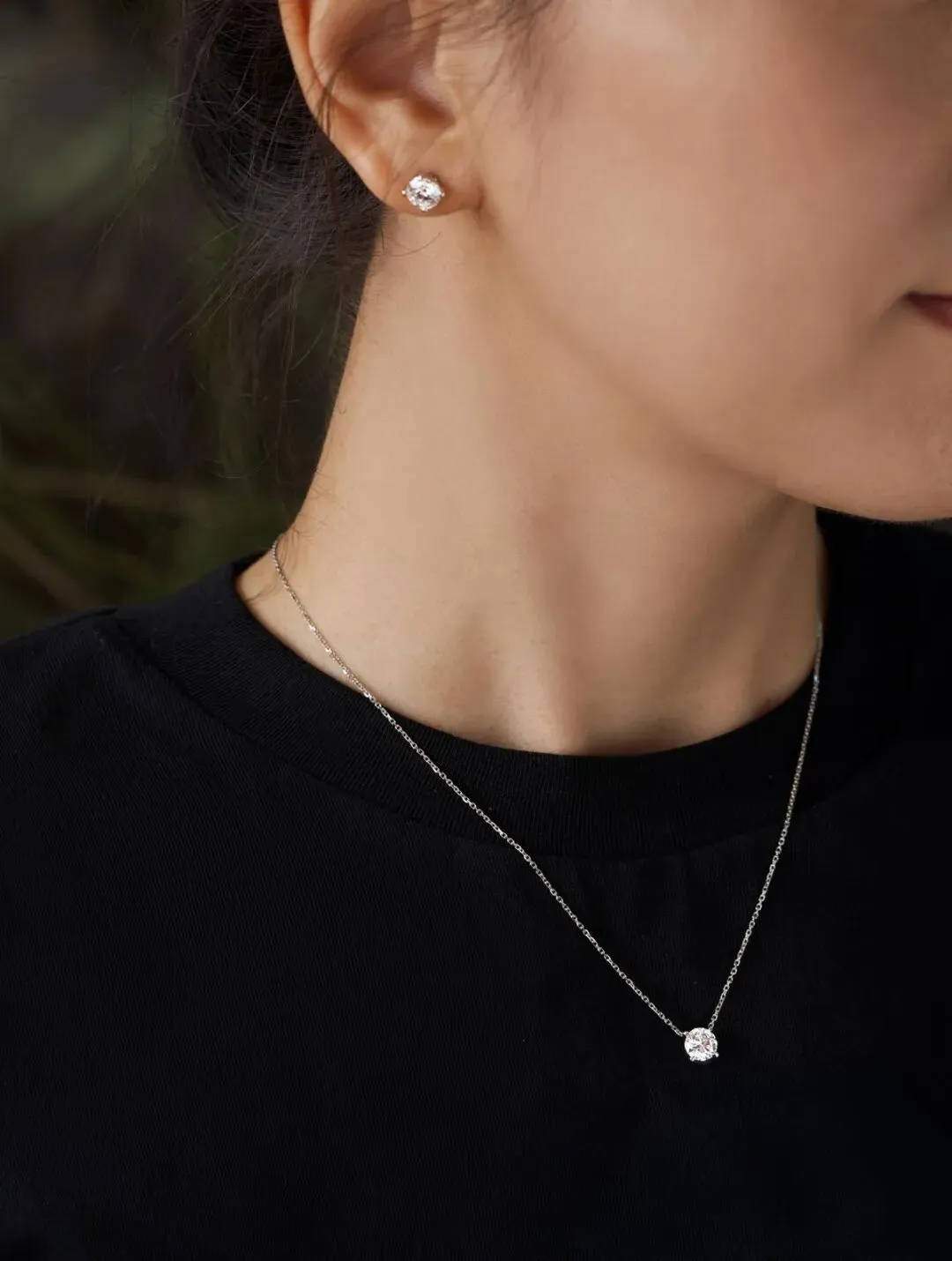 圆裸钻钻石耳钉与圆裸钻钻石吊坠项链镶嵌方式相同,可作为一套搭配佩戴