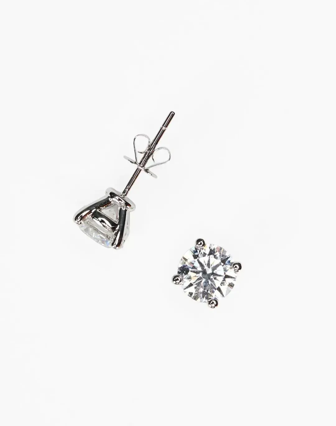 这款钻石耳钉使用10K白金耳堵