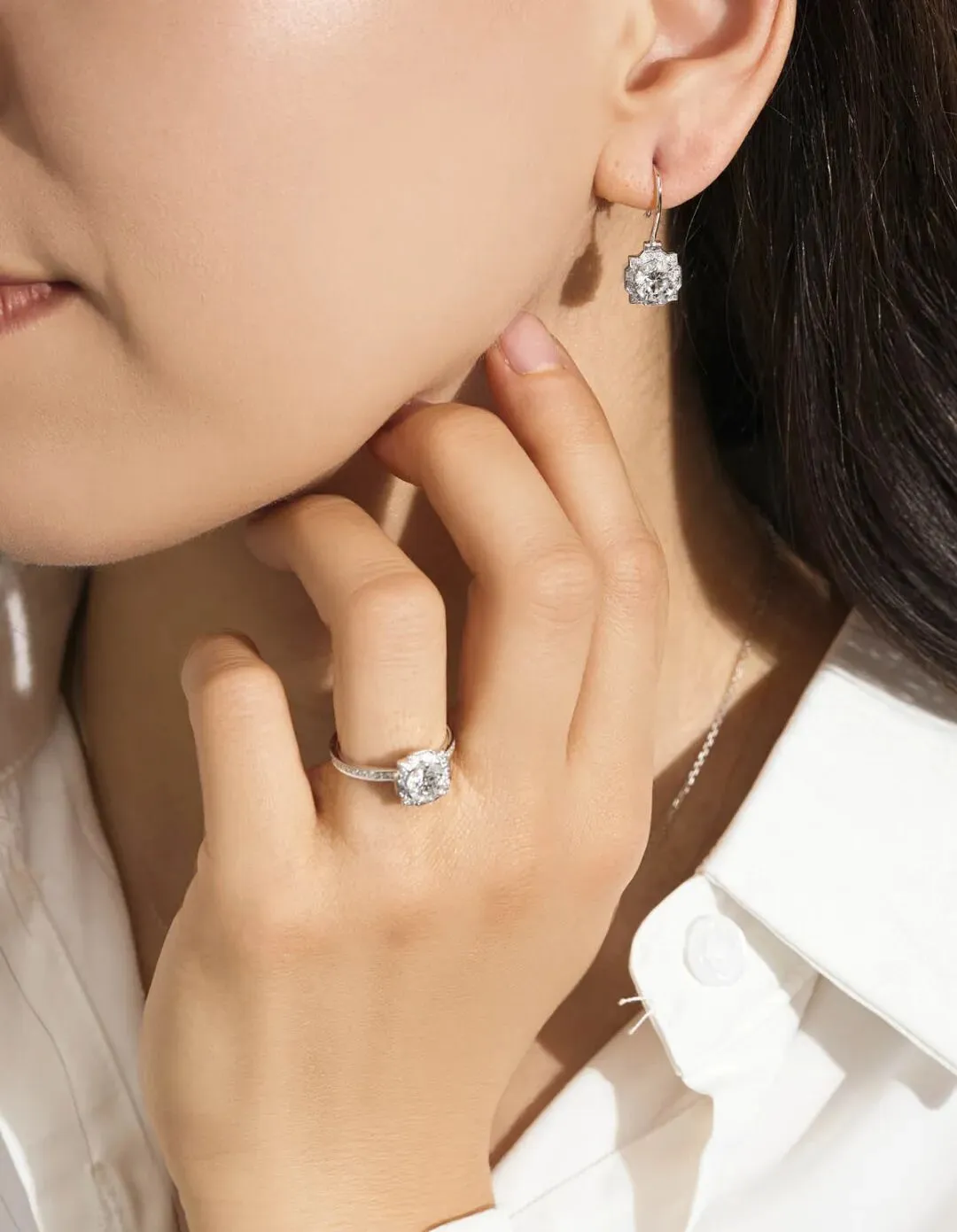 虽然经典设计一般围绕婚戒设计,但其实每一款都有配套的项链和耳钉/耳环
