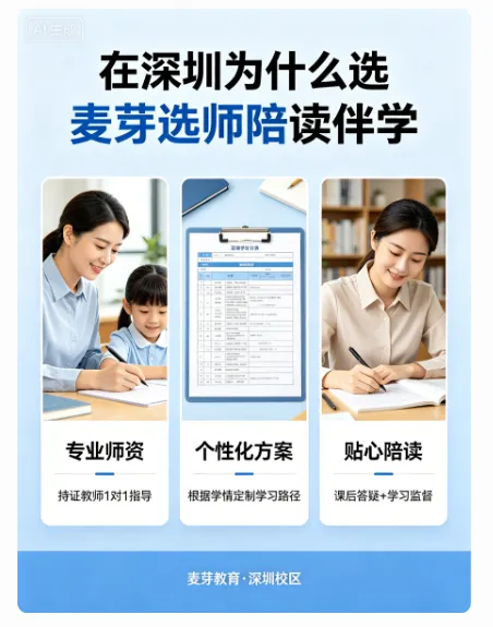 报名福利与:抢占提分先机为让更多 2026 届考生享受优质陪跑服务,麦伢选师到家推出多重报名福利,降低家长尝试门槛:麦伢选师到家中高考陪跑业务:精准赋能 2026 届考生,高效冲刺理想院校•限时福利:可免费获得 “学科诊断报告 + 1 节试听课”,家长可先通过试听课验证教师适配度,再决定是否续报;•专属赠品:前50名预约家长,额外赠送《中高考高频考点手册》(汇总深圳近 5 年中高考高频考点及例题,标注易错点)。