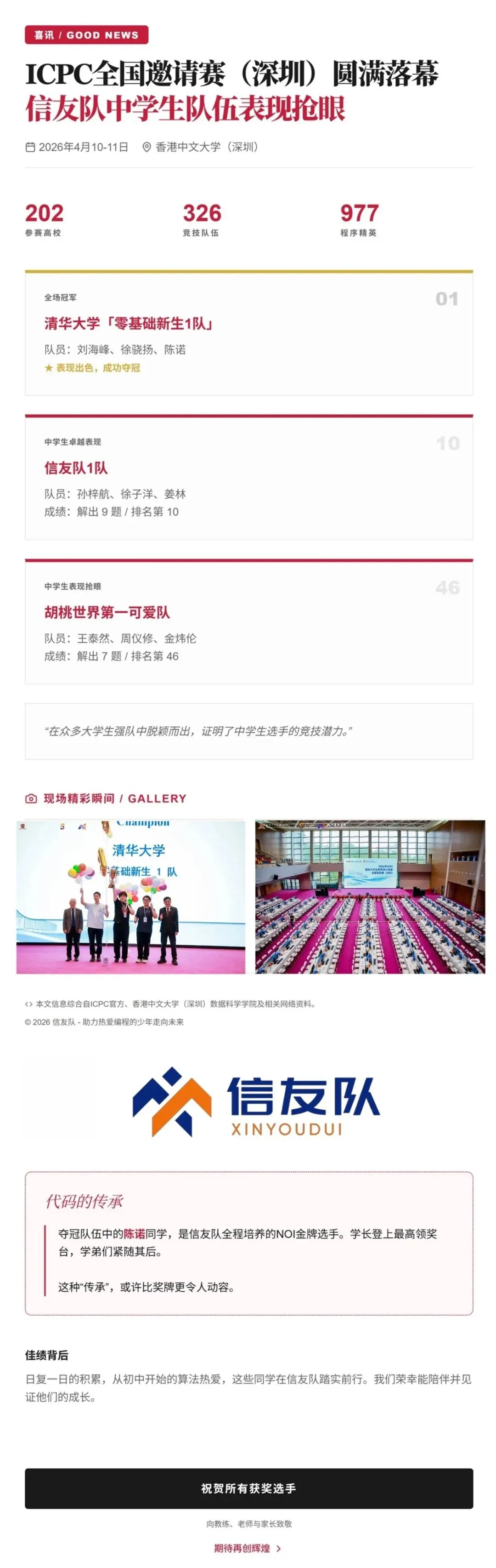 ICPC全国邀请赛(深圳)圆满落幕 信友队中学生队伍表现抢眼