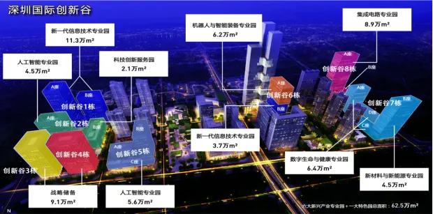 项目定位:六大新兴产业专业园、一大特色园——新一代信息技术专业园、人工智能专业园、新材料与新能源专业园、机器人与智能装备专业园、数字生命与健康专业园、集成电路专业园、科技创新服务园。特色园为中国第二个挂牌的国家级实验室,鹏城实验室。