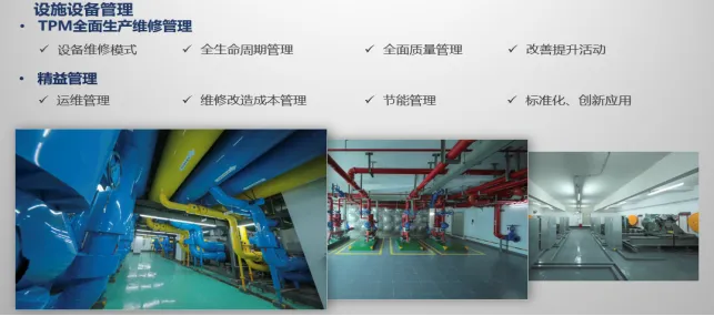 4、设施设备管理:TPM全面生产维修管理,精益管理。