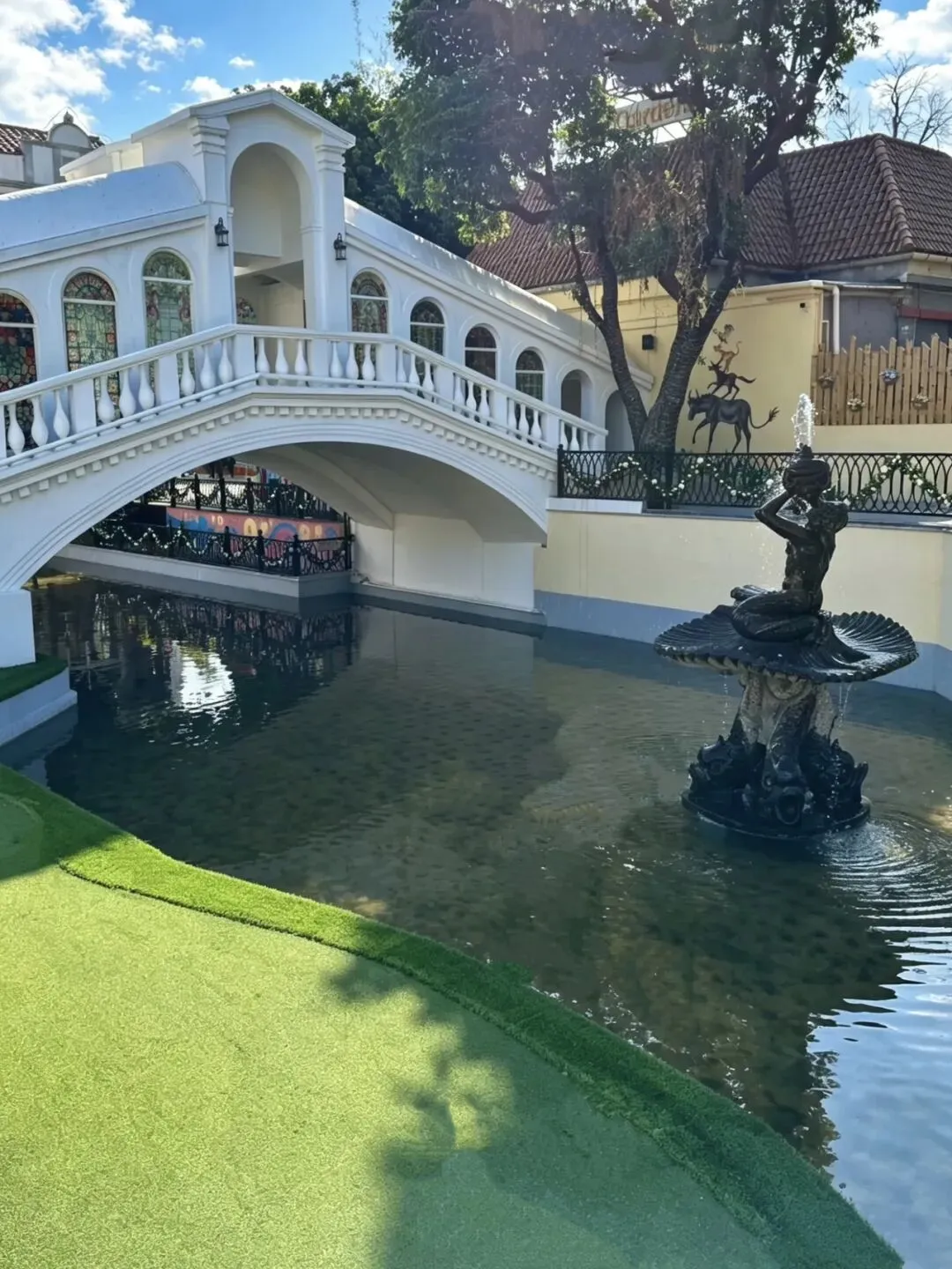4、ins风庭院,入口靠近肆拾玖坊,喷泉,小桥,草坪、绿树红砖随手拍都出片