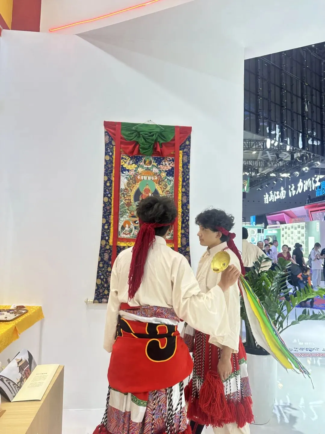 原定在5天的展期内,我们只是展览和展示,但是每天都有很多观众喜欢我们的唐卡作品,不断地进行唐卡文化讲解的同时,不得不进行一些销售和预定,展会第一天大部分唐卡展品都已经预定出去了。