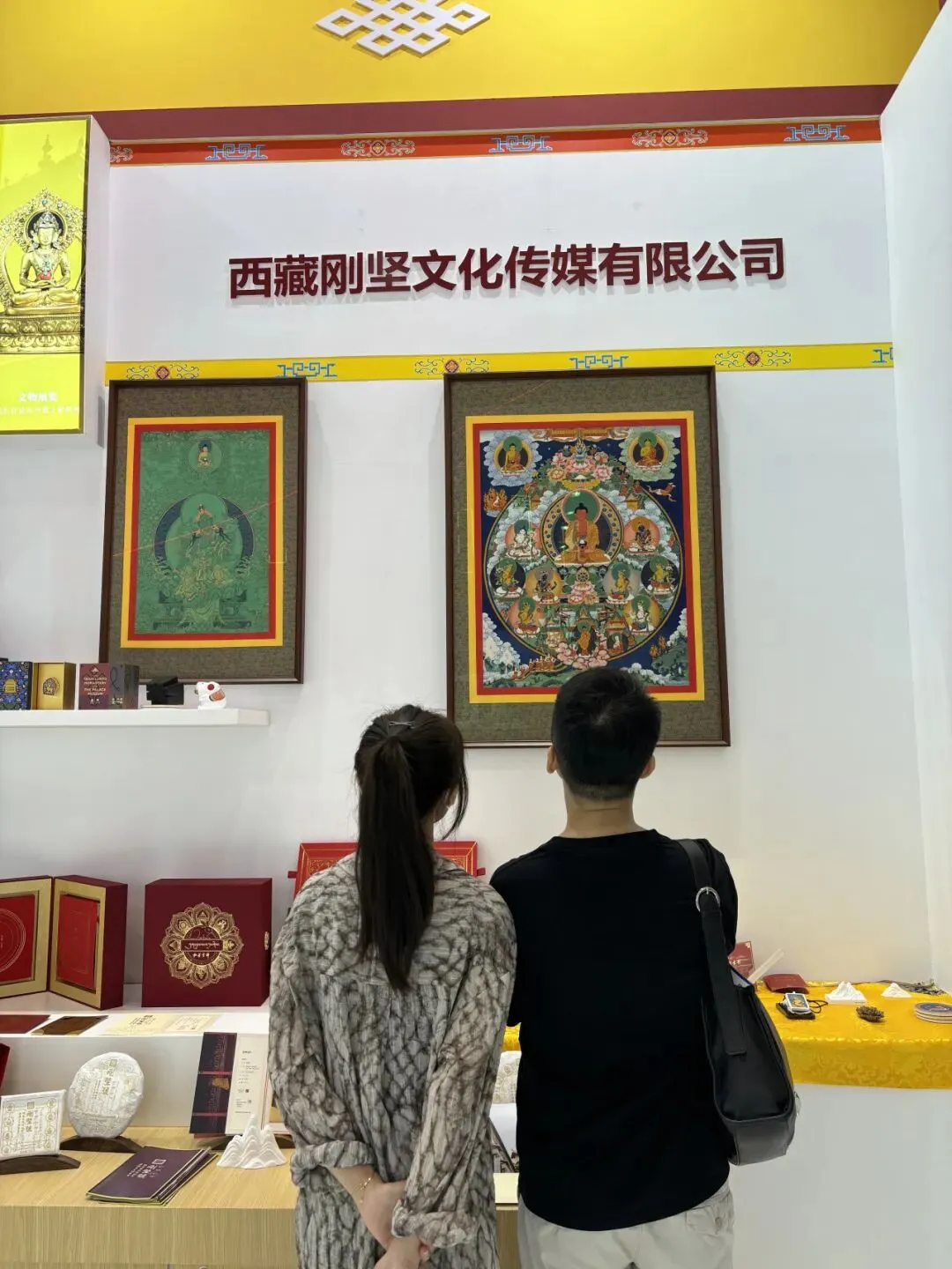 西藏刚坚文化传媒有限公司作为西藏自治区政府大力支持的民族企业,作为专注于唐卡艺术保护传承的行业领头羊,受邀在此次文博会上带着刚坚唐卡画院的多幅唐卡作品亮相。