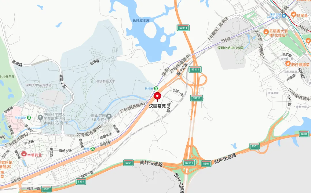 此次风波涉及的小区名为“汉园茗院”,位于南山西丽片区,离地铁 5 号线长岭陂站 A1 口仅一百多米,距深大丽湖校区约 2 公里。
