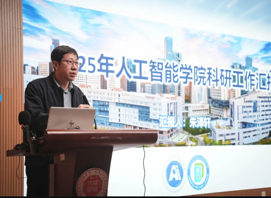 人工智能学院副院长朱泽轩汇报了学院科研工作在过去一年取得全面进展。