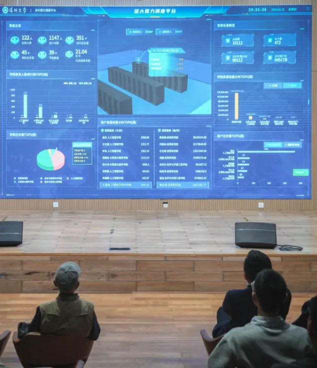 智算中心成为科研创新的 “硬核支撑”,提供 318P Flops@FP16 的 GPU 算力,超算 CPU 总核数超 5000 个,存储容量逾 6PB,搭载 200G IB 高速互联网络,已为 39 个单位完成 21 万个任务,成为 AI 研发的重要算力底座。