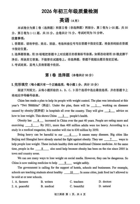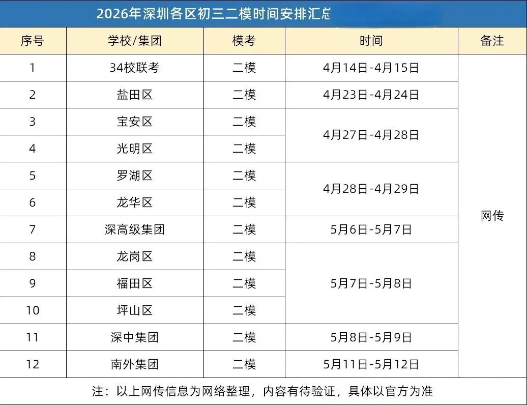注:二模并非全区初中统一考试,有部分初中不参加区二模,但参加集团或多校二模,大家以学校通知为准即可。