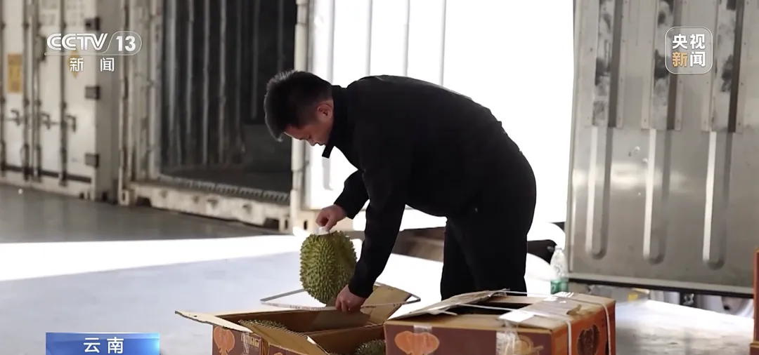 在昆明王家营西站附近的物流基地,榴莲验果师正凭借嗅觉、视觉和触觉,细致查验每一个榴莲,精准判断其品质和成熟度,确保最优质的榴莲能够进入市场,送到消费者手中。