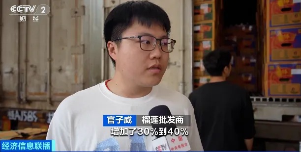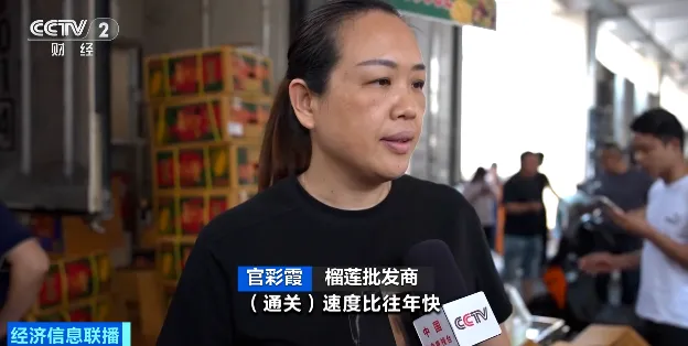 榴莲批发商官彩霞说:“通关速度比往年快,目前五天就能在市面上见到泰国榴莲。”
