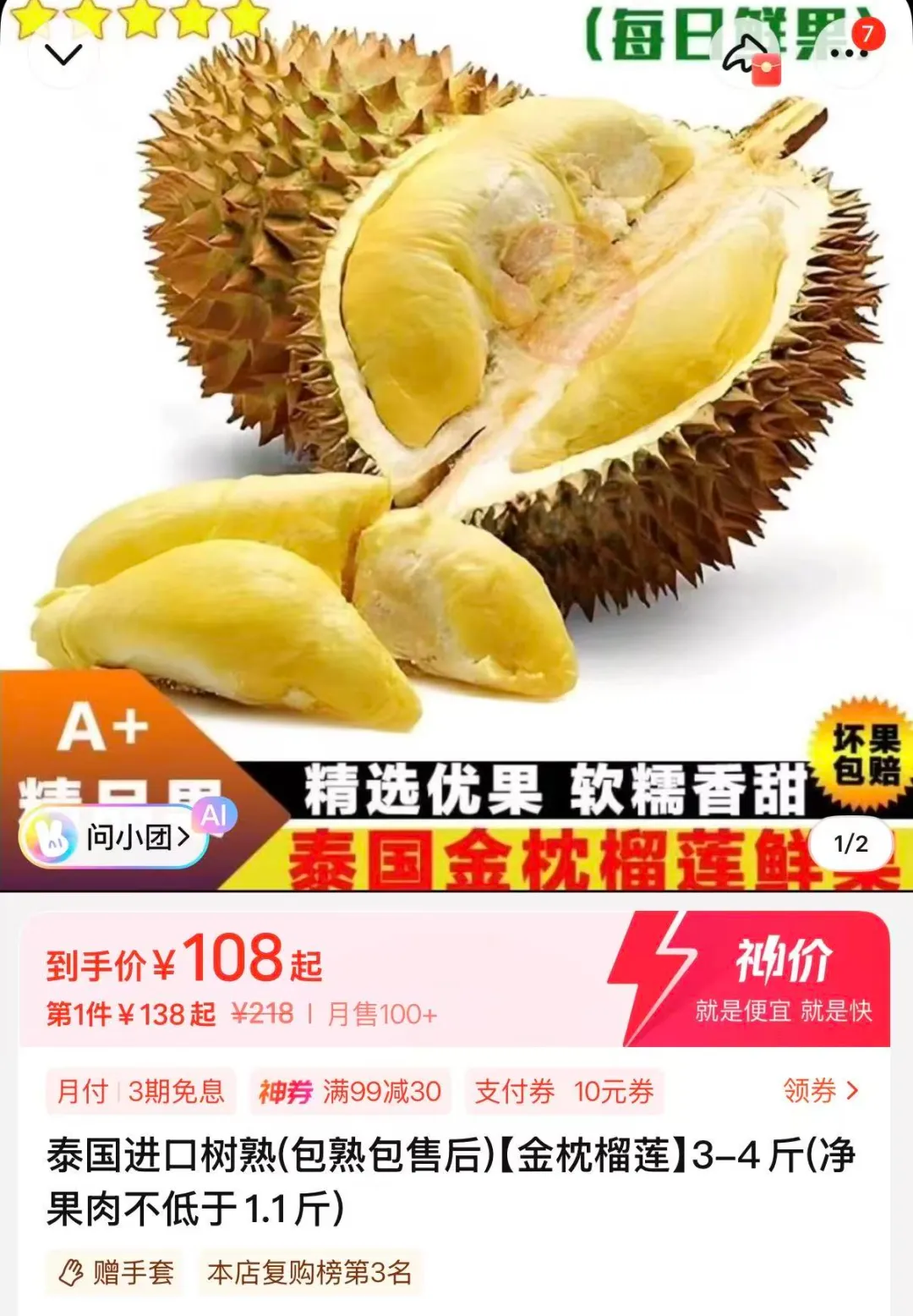 除了上述两个方案之外,还有一个简单靠谱的解决方案,那就是买速冻榴莲果肉了,虽然味道没有新鲜成熟的那么好,但是胜在质量稳定,也不会被“开盲盒”的结果搞坏心情。