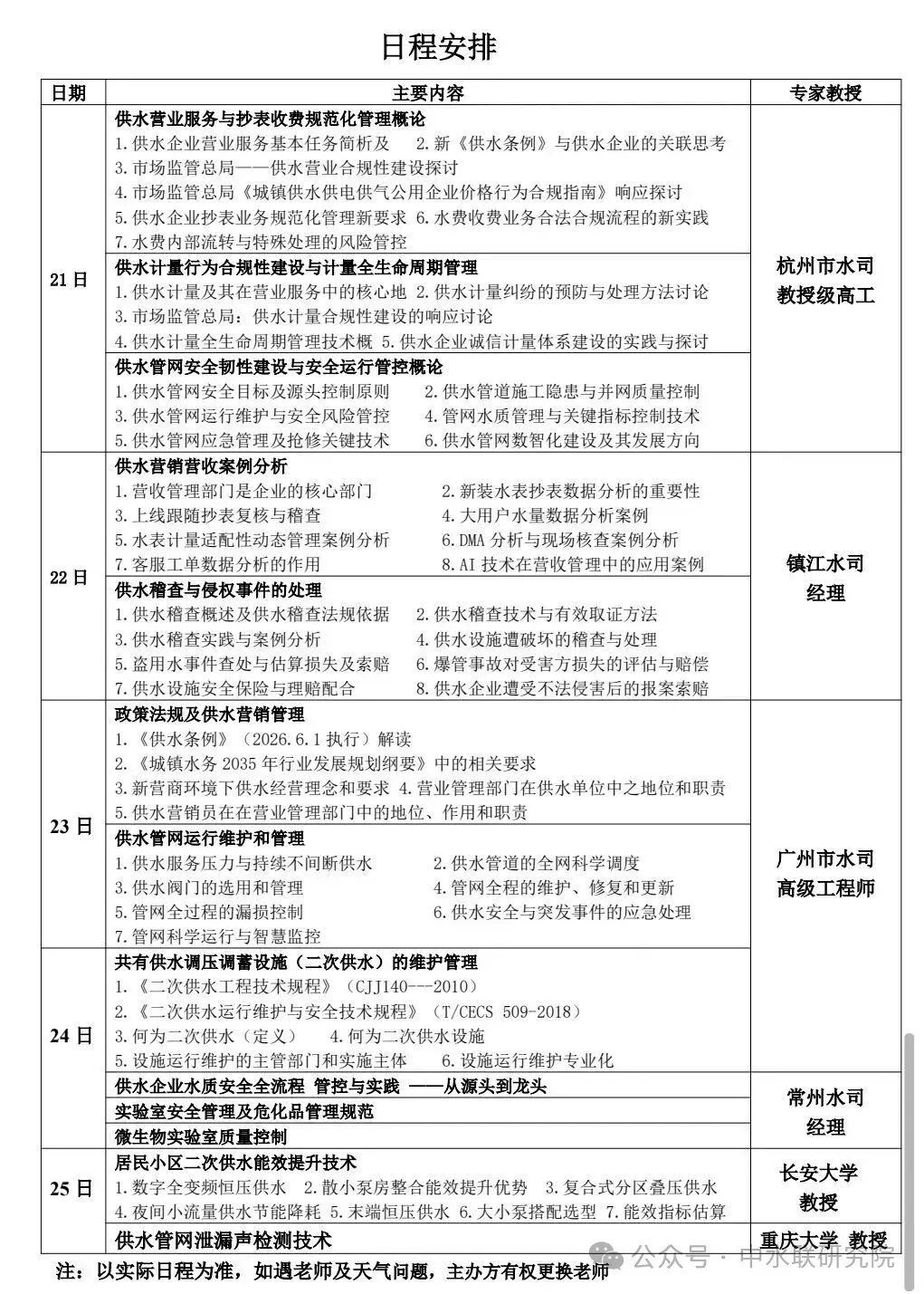 8、城镇供水企业全环节安全运行与全过程水质安全风险管控时间:2026年5月20日—26日