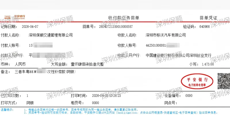 报案:2026年03月23日12时40分我司接到广东省深圳市事故报案。