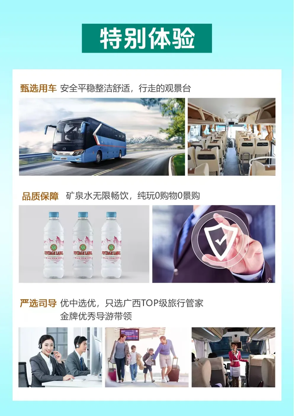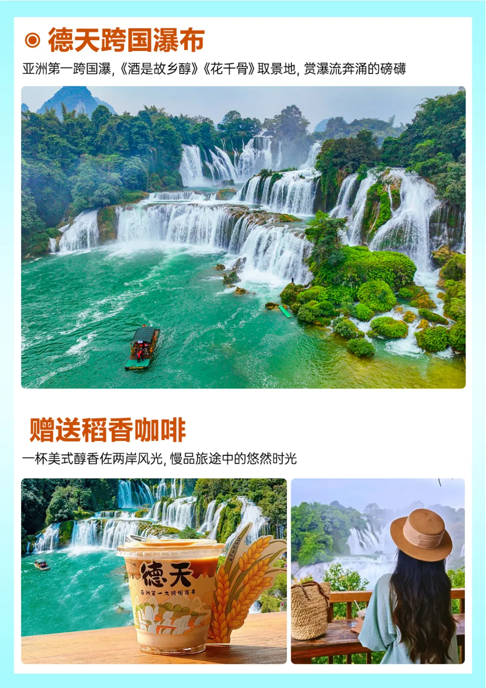 6、非必消:德天景区电瓶车10元/人,德天竹筏48元/人,属景区内不必须自费项目,请客人自行自愿慎重消费。