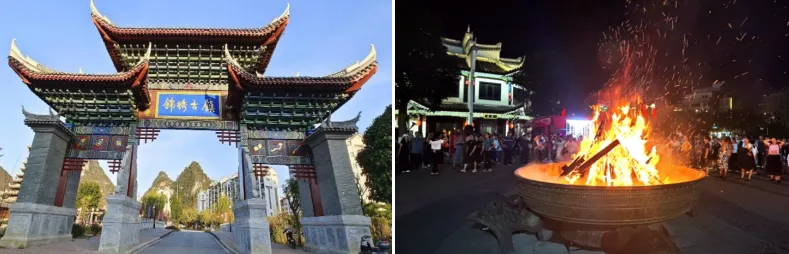 16:30探索壮乡夜文化【锦绣古镇、篝火晚会】(游览时间约1小时)戏曲与美食交融,打造沉浸式体验性夜间文旅消费新场景,让靖西的夜充满魅力和活力。(该景点为免费赠送景点,如遇天气或其他原因,篝火无法举行,费用不退。)