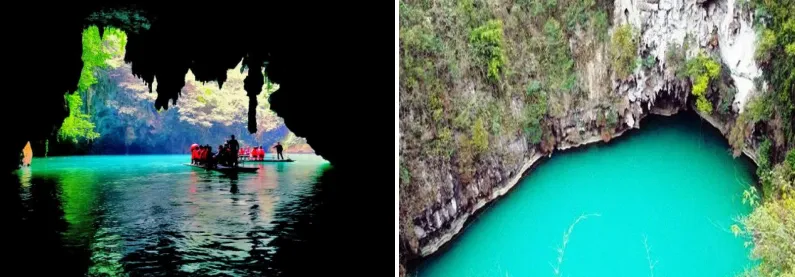 观赏【洞天盛境】(游览约2小时),观赏地下大峡谷奇观,三公里栈道仿佛进入神秘迷宫,奇石千姿,异景纷呈。穿岩而过的地下河倒影,虚幻迷离,美妙绝伦。