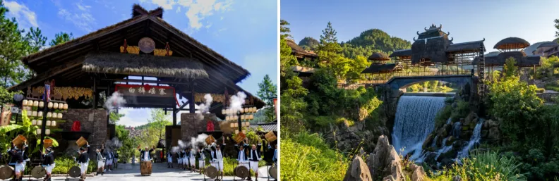 8:30 游览【白裤瑶寨】(游览约1小时),被誉为“人类文明活化石” 的白裤瑶聚居地。可观赏铜鼓表演、陀螺舞、牛角酒迎宾、原生态山歌;参观民俗馆了解白裤瑶婚俗、服饰(男子白裤、女子百褶裙)、织绣非遗;夜间有《天地始歌》实景演出与篝火盛宴,沉浸式感受瑶家风情。