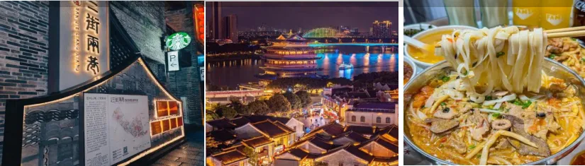 入住后自由活动,可慢步游南宁繁华的百年商业老街--【邕州古城*三街两巷】,或可前往平西夜市、农院路等当地小吃美食一条街品尝:海鲜烧烤、酸嘢、老友粉、甜品、田螺鸭脚煲等当地风味美食,感受绿城南宁丰富的夜市生活。*