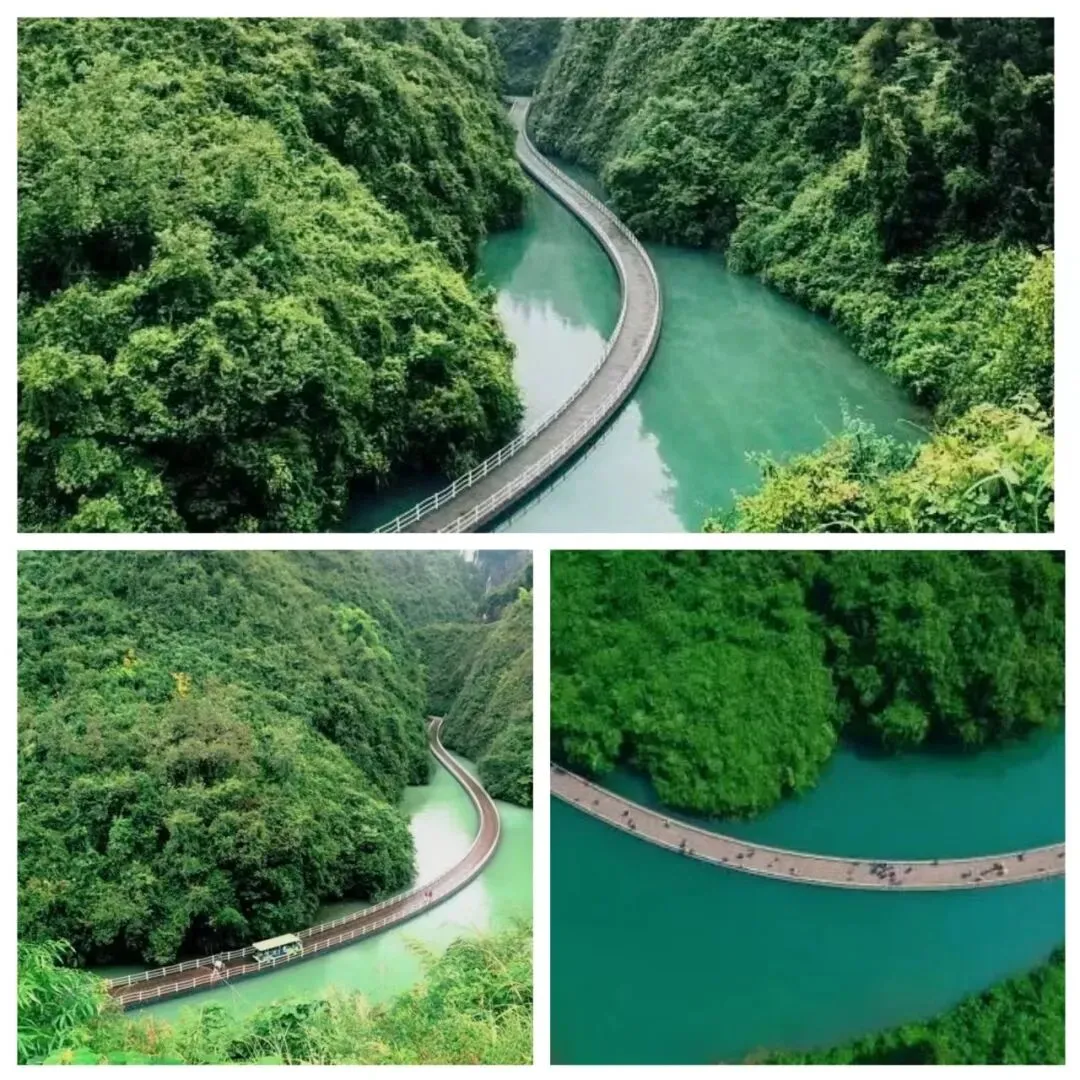 其中最美漂浮式“水上栈道”, 有一个山秀水碧的地方叫狮子关,这里有一条500米长的“水上栈道”蜿蜒穿梭在碧绿的水面上,它有一个诗意的名字叫“廊桥遗梦”,让人瞬间联想起美国那部著名的同名电影。