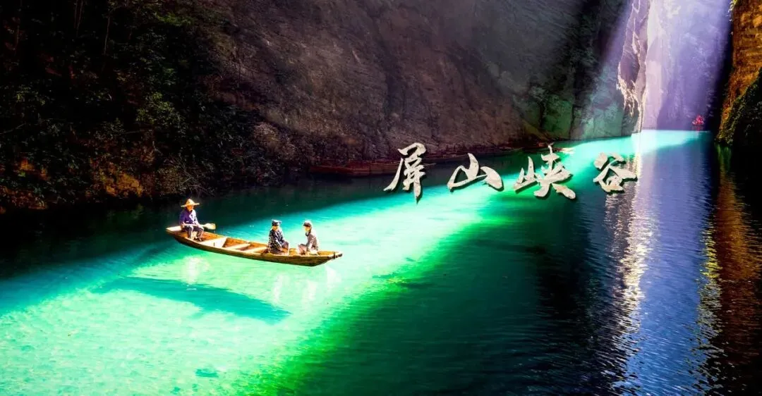 屏山峡谷全长18公里,形成于三叠纪时期,山体形态变化多样,四周峭壁耸立,自然风光集奇、秀、险于一体。山谷地缝移步换景,如穿越时空;舟行绝尘之水,如悬浮浩瀚宇宙;步踩罡步天梯,能摘满天繁星。山之雄奇,水之秀美,崖之险峻,让人一步一叹,流连忘返。