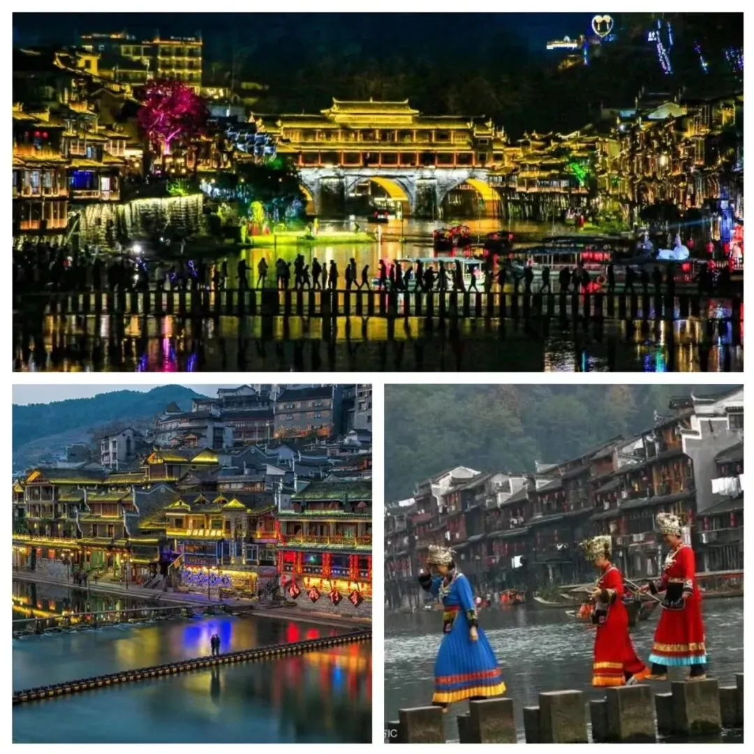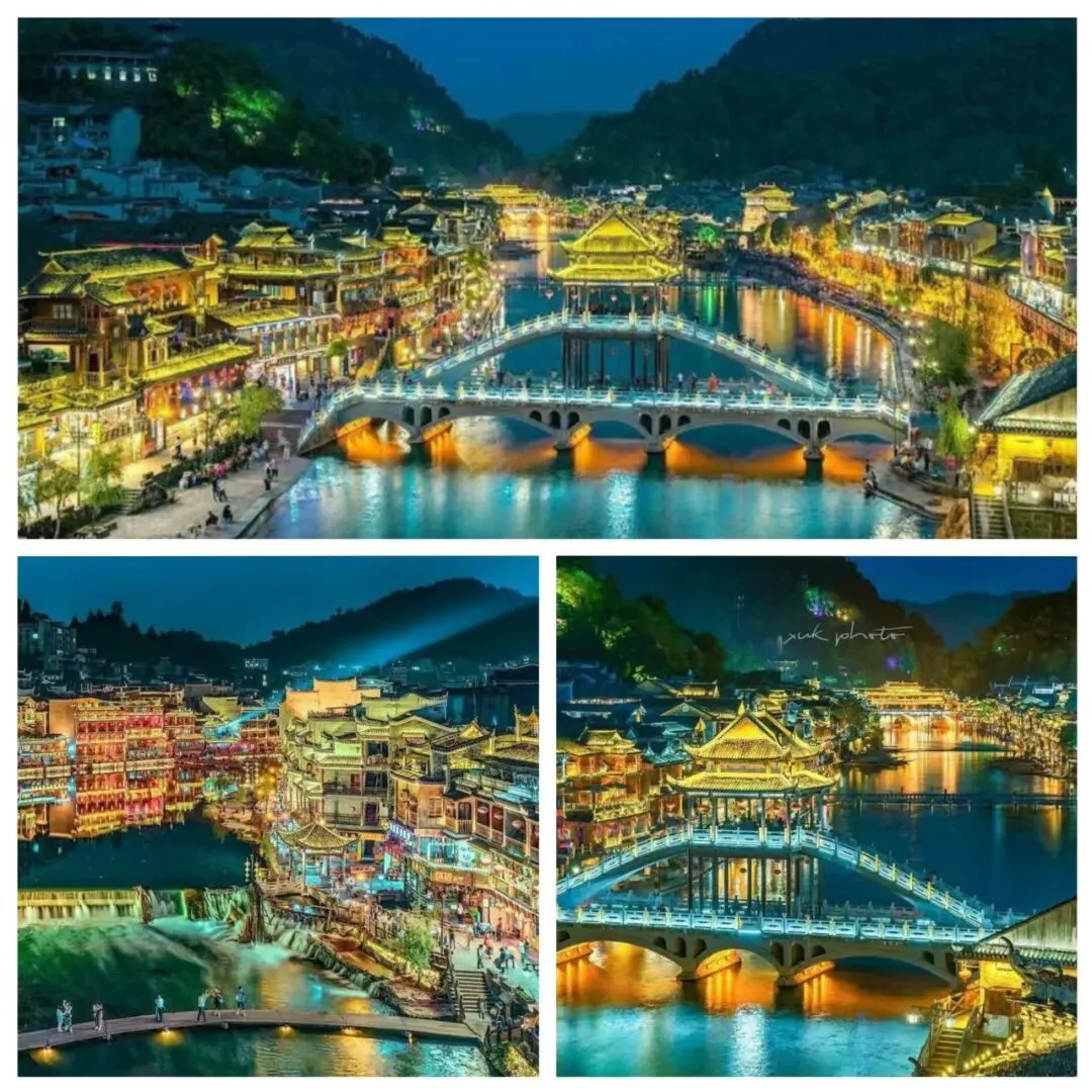 下午抵达【凤凰古城】后办理入住,然后自由活动。晚上可看看凤凰夜景,凤凰夜景非常迷人,吊脚楼上灯光点缀,沱江水面上的画布用各种色彩调配出最美丽的凤凰夜景!喝茶、咖啡、品尝当地特色小吃、美食,江边泡吧……