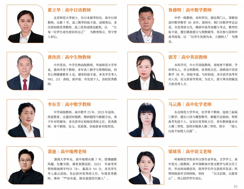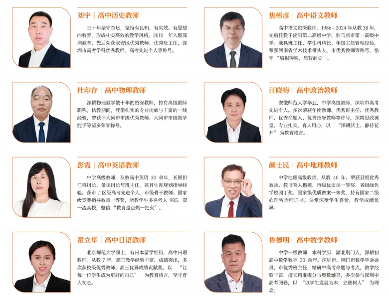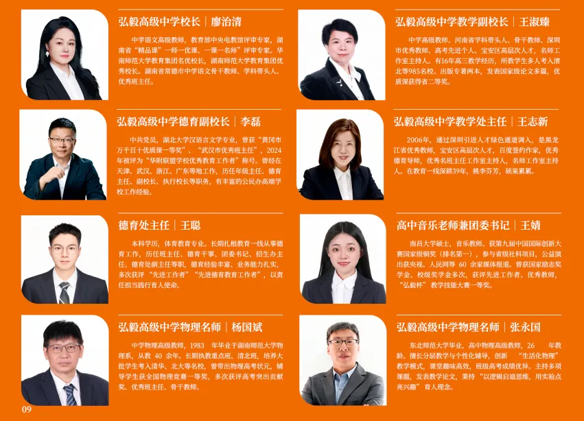 弘毅高级中学精英团队,主要由华师大、黄高、深大附中管理团队和名优教师及全国各地竞聘上岗的正高,特级教师,省,市学科带头人,骨干教师,985、211毕业的优秀研究生、应届毕业生组成。研究生学历占教师团队的40%,名师骨干占教师团队的30%,精英团队的组建,为每个学生的发展提供强有力的保障。