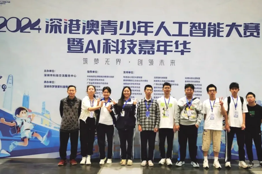 在弘新书院制的引领下,我校科创教育成果亮眼,学生科技创新热情被充分激发。航空航天社自 2024 年 10 月成立以来,依托完备软硬件设施,赛事战绩斐然:深圳市青少年科技运动会斩获一、二、三等奖共 9 项;第九届青少年无人机大赛 10 名参赛学生全员晋级省赛并获奖,其中一人获省级二等奖,达高校降分录取标准;社员在新加坡亚太人工智能青少年科技创新大赛获国际二等奖,深南电路杯赛事再添荣誉。科技创新社在第六届广东省青少年创新思维及科技实践大赛中,三十余位参赛学生全员获奖。2024 年至今,学生在各类科创赛事中累计荣获一、二、三等奖超 100 余人次,彰显了我校在科技创新教育方面的硬实力。